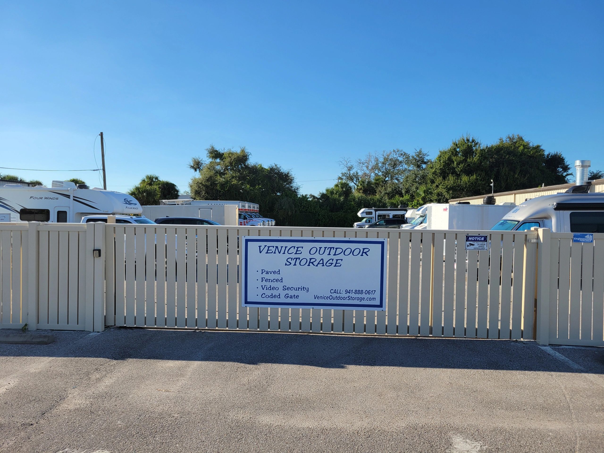 Centrally located, we serve the outdoor storage needs for residents in Venice, Englewood, Nokomis, Sarasota, North Port, and surrounding areas. Located just off US Highway 41 bypass in Venice, Florida.
